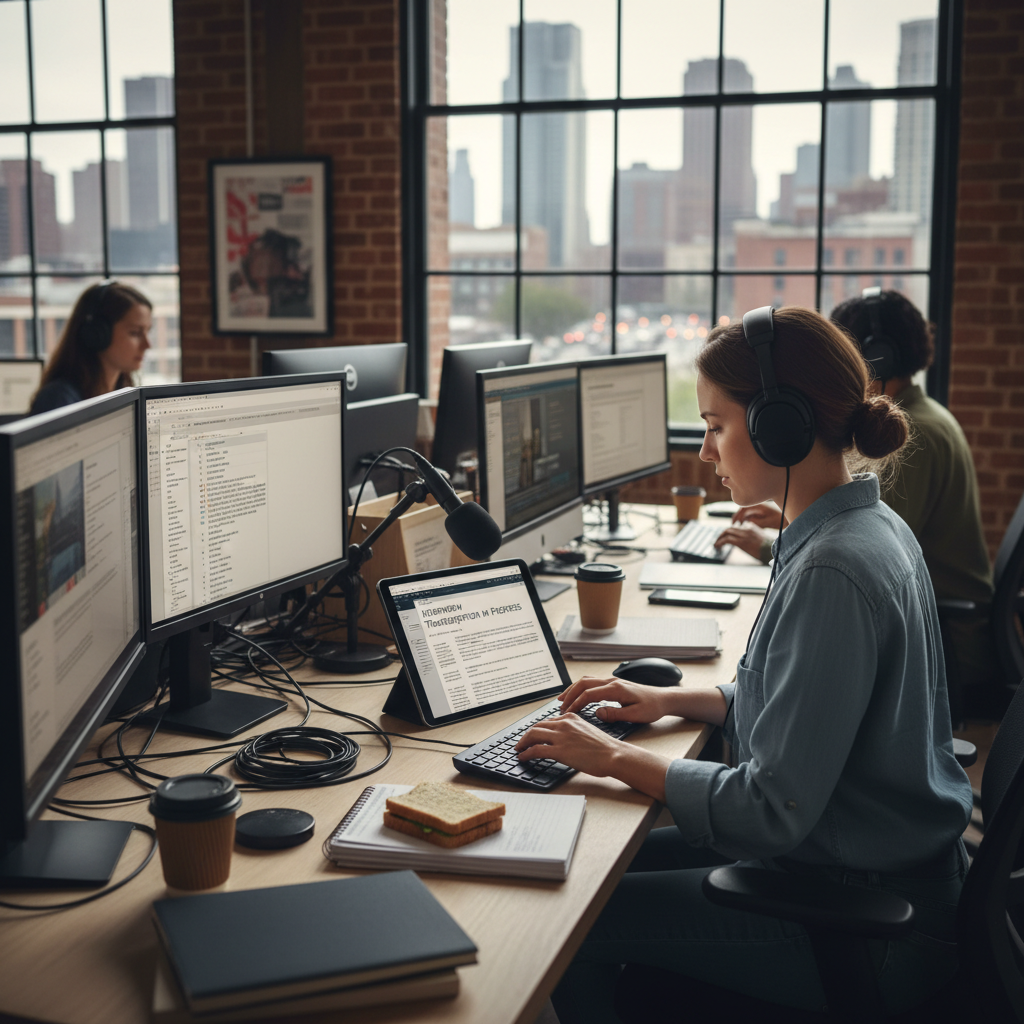 W środowisku, gdzie każda minuta decyduje o tym, kto pierwszy opublikuje przełomową informację, automatyczna transkrypcja stała się narzędziem nie do przecenienia. Dziennikarze śledczy wykorzystują AI do szybkiego przetwarzania godzin rozmów, wywiadów i nagrań z terenu. Jak podaje NowyMarketing, 2024, redakcje, które wdrożyły transkrypcję AI, skróciły czas przygotowania materiałów nawet o 75%.