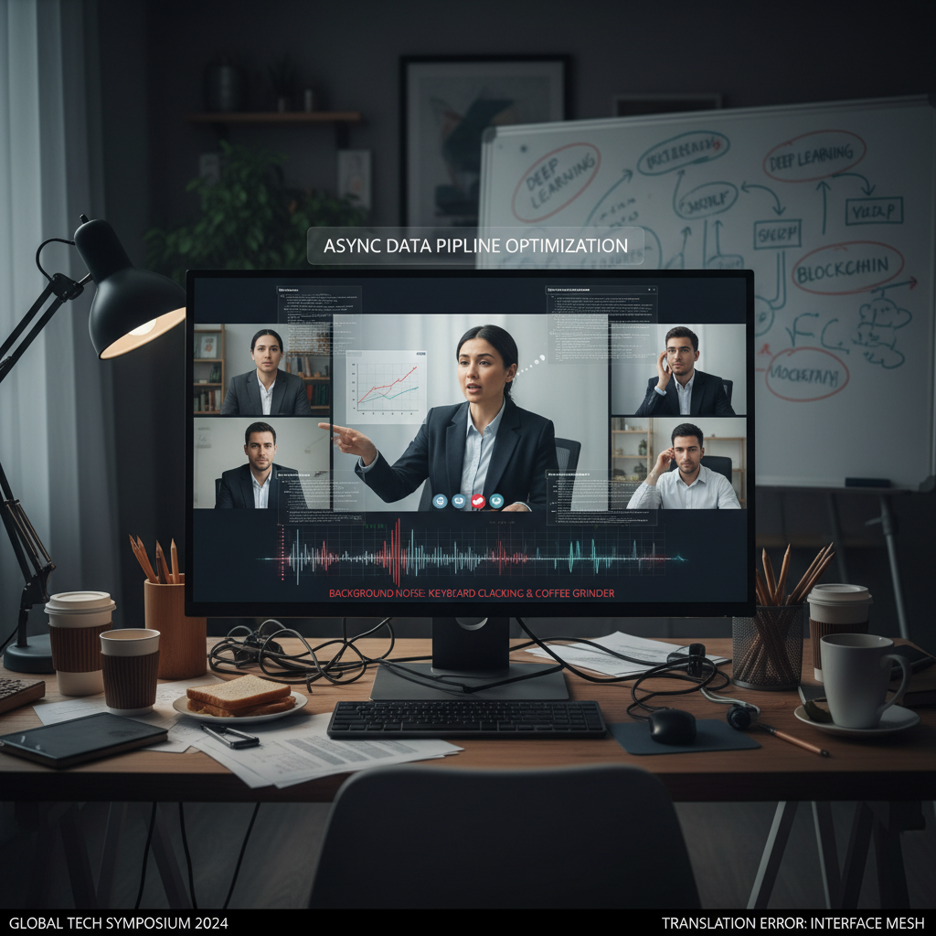 Konferencja online z wieloma rozmówcami, trudne warunki dźwiękowe i żargon – wyzwania dla transkrypcji AI.