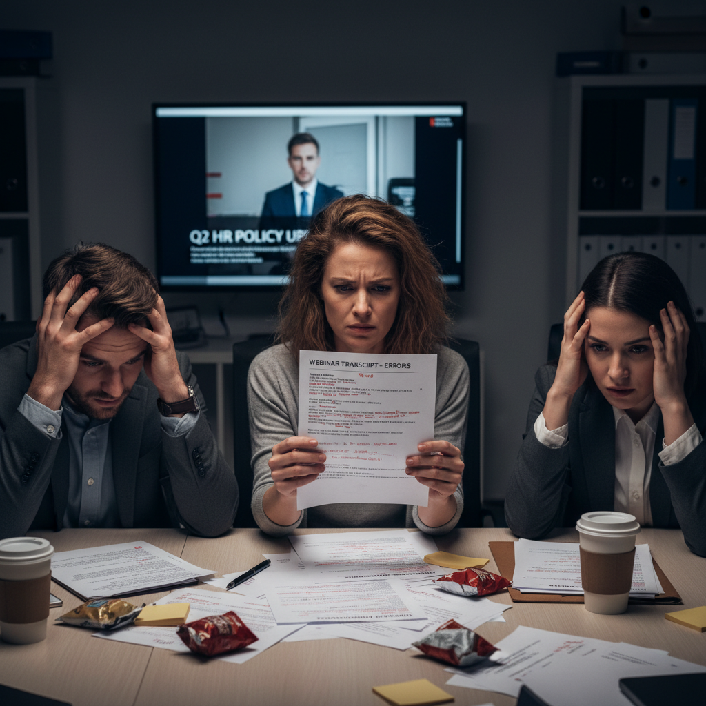 W praktyce, ręczna transkrypcja webinaru kończy się kłopotliwą korektą, przestojami i – paradoksalnie – wyższym kosztem. AI potrafi skrócić czas transkrypcji do minut i zredukować błędy, czego nie zapewni nawet najbardziej wprawny transkrybent.